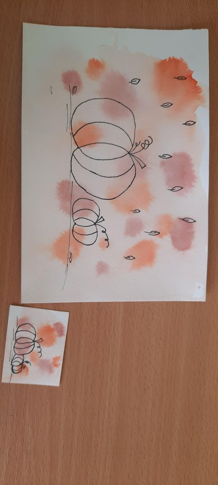 Upam, da imate jesen radi. Danes sem ustvarila jesensko sliko z bučama ter listjem.