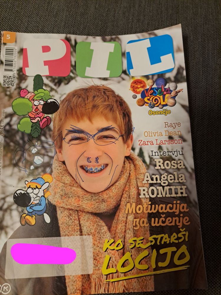 Žal se je v tiskarni, kjer se tiska Pil, tokrat malo zapletlo. Če ste med tistimi, ki so dobili »pokvarjen« Pil, pišite na revije@mladinska-knjiga.si ali pokličite na 080 12 05. Poslali vam bomo novega.