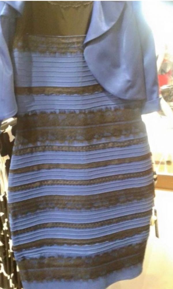 js vidim modro, te črte so pa tko med črno pa zlato. ena moja sestrica vid enako ko js, ena je pa lani vidla belo zlato pa je neki jazila, da kaj jo zajebavam da je bela pa zlata.