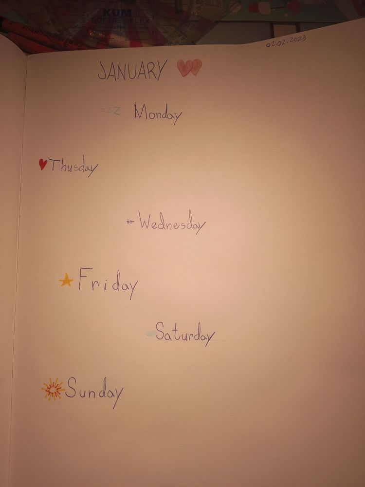 Tole je začetek in ker se je že začel Februar sem rekla da bom kar tako sajo dneve tedna. V naslednjem delu bom verjetno vseeno za Februar. Idk:shrug:.