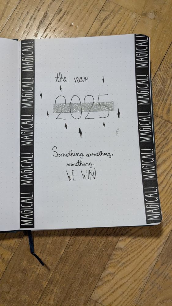 Končno sm dobla stvari za bullet journal. nrdila sm za leto 2025 (za decembr nima smisla ker ga je že pol mem). pač ful zanimiv mi je, da mi je ratal pisat čez washi tape (idk kako se napiše). pa spodi sm napisala en quote.