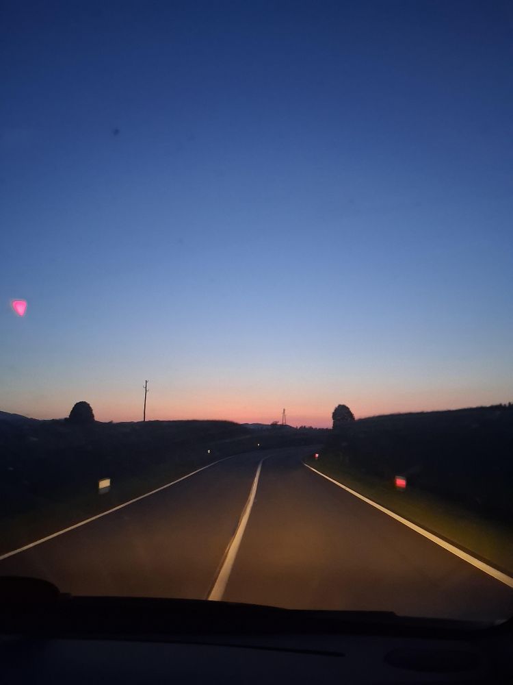 to je ena random slika iz avta narjena haha<3 barve so mi všeč. pa ignorite uno rdečo piko, odseva se u šipi<3