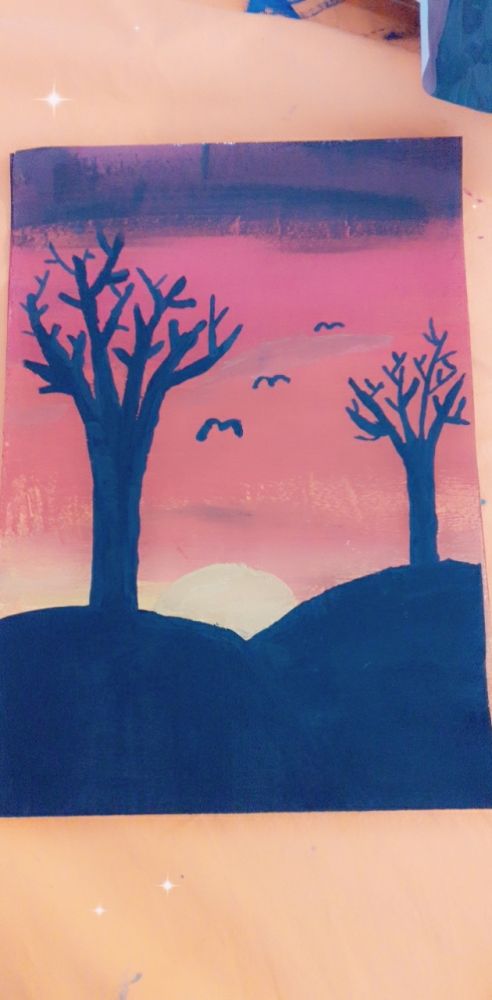 Narsiala sem sončni zahod. Upam da vam je všeč:blush:. Sploh nisem vedela da znam tako lepo risat, zato bom vsake toliko časa objavila kakšno mojo 'umetnino'.:grin: