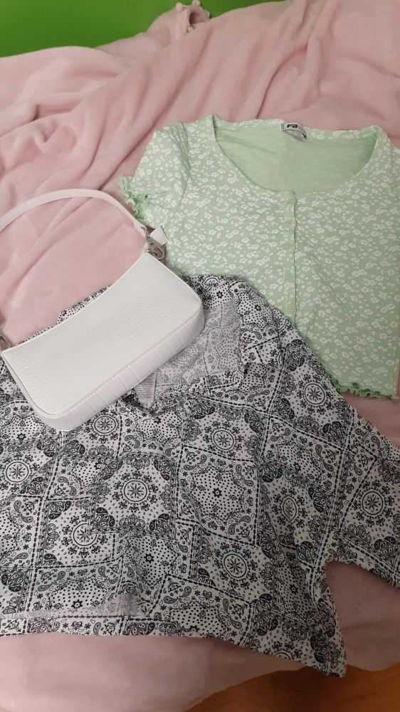 zelena top crop majÄka z belemi rožiÄami = (znižano) 2.99ā¬