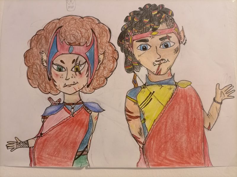 Khem khem... Torej to sta ena dva ki nimata imena:joy: em.. lahko ju poimenujete:relieved: aja pa narisala sm jih kr sm neki sanjala in mi je blo dc ko nevem kaj ker pac no ja kakorkoli ja nastala sta vceri zvecer:sweat_smile: ubistvu sta neka bojevnika ki sta resla celo ljudstvo in so jih potem okronali in ja take fore... Torj lahko ce zelite jih kako naj recem... posvojite? prilastite? kakorkoli že za svojo zgodbo.To pomeni da ju lahko uporabite v zgodbi al pa si nrdite zgodbo o njihovem zivljenju u glavi in pol mi napisete v koticek ker me ful zanima kako si predstavljate to sliko... lahko sta poročena al pa brat in sestra, lahko sta samo vojaka in tisto niso krone itd... no ja pisite če želite mene ne moti:grin: nevem zakaj to pišem ampak ok.