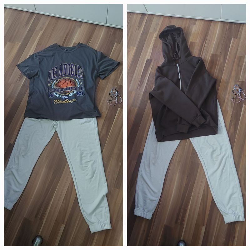 Pa pls ne komenitrat mojga zlaganja ker so mi in hlače in majca tok prevelke da nisem vedla kako naj lepo zložim brez da bi blo čudn. Aja pa kolaž sem nardila ka nisem vedla kako naj dam jopco pa majco na eno slikco heh.