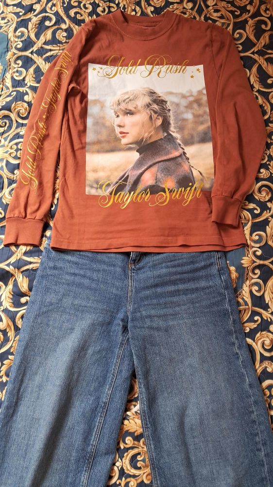 Ja, kot sem obljubila sem pripravila majhno presenečenje, sploh za swiftije.:blush: V maju sem praznovala svoj rd in sem za darilo dobila tole tuniko. Meni je ful ušeč, sploh ker zelo rada poslušam Gold Rush.