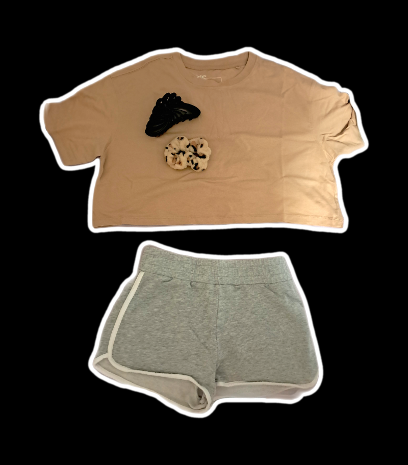 Danes se šla na casual kinda in Kratke hlače so iz Newyorkerja in "Oranžen" crop top je tudi iz Newyorkerja. lastika je iz tedija in clip je tudi iz tedija danes ne grem nikamor za to sem casual.