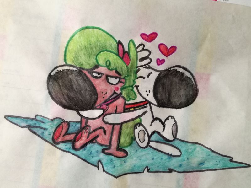 hojla! danes mi je bilo malo dolgčas zato sem se odločila ,davprerišem pepco in šnofija z aprilske naslovnice pila. Najprej sem sliko prerisala na papir potem jo pobarvala z vodenimi barvicami (barvice, ki se topijo v vodi tako, da sem pobarvala potem pa šla čez z kančkom vode) in nazadnje obrobila z črnim flomastrom in kulijem! upam, da vam je slika všeč.:slight_smile::grinning: