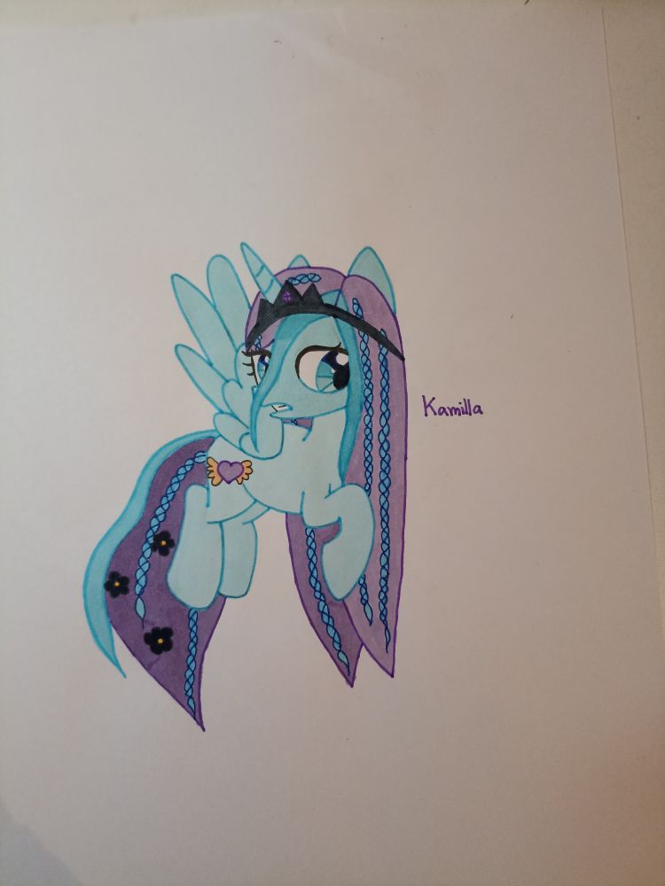 Živjo, tukaj je tvoj pony. :) Upam, da ti ustreza. Sicer griva ni ravno takÅ”na kot v tvojem opisu, saj ni le vijoliÄna, ampak tudi malo modra, se mi pa zdi, da to popestri risbo. :)