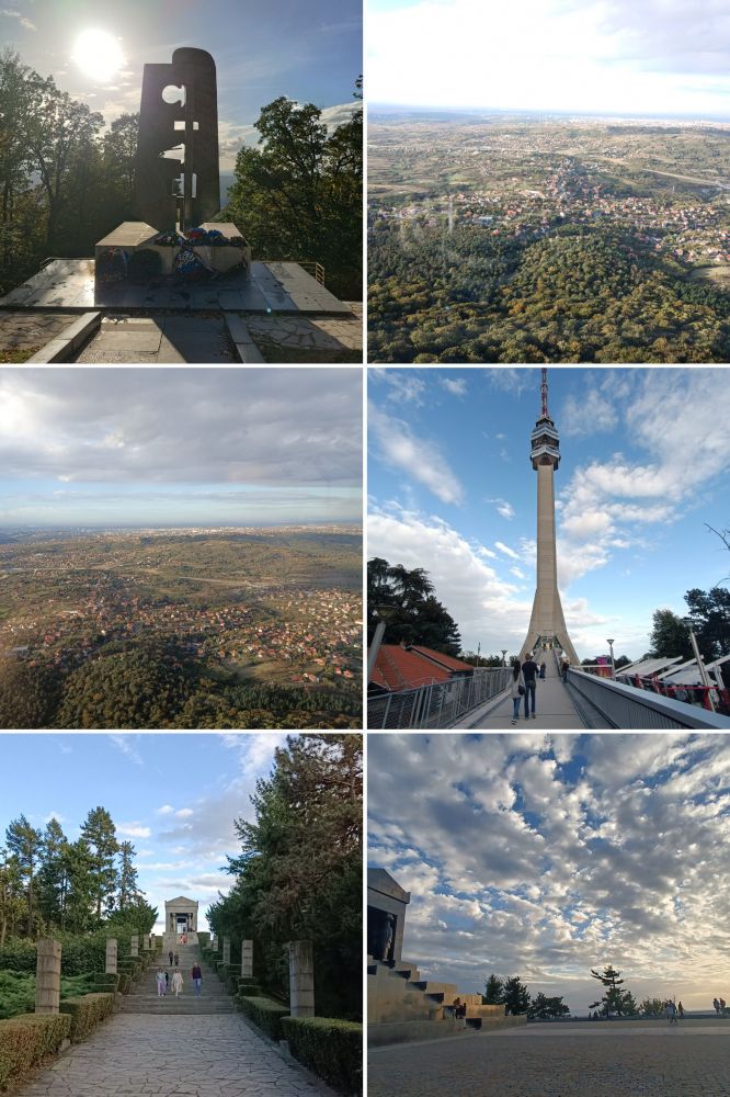 Naj najprej povem, kaj to sploh je. To je pravzaprav hrib, nekoliko južneje od Beograda. Tam sva imela tri točke ogleda. Prva je bila *b*spomenik sovjetskim vojnim veteranom*b* (slika prva vrsta levo), ki so jo postavili v spomin Rusom (takrat imenovanim Sovjetom), ki so tu strmoglavili.
