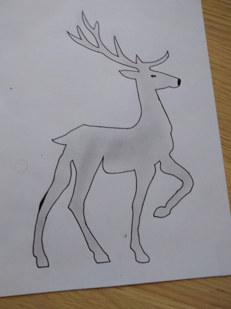Tukaj je moja sloka jelena. Potrudila sem se in narisala. Upam, da ti je všeč in, da se bo videlo vse. Znotraj sem ga osenčila.