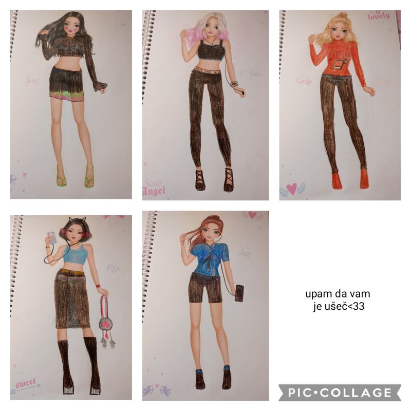 ojlaaa:wave:, kot obljubljeno je tukaj moj kolaž teh punc, ki sem jim že narisala oblačila. Kot sem pa že rekla se lahko prijavite(prijav je omejeno(7)), in vam pošljem uprašanja kakšno punco želite imeti in nato vam jo narišem ter objavim v hvalilnico. Če želite se lahko prijavite. V priponki pa je slika kolaža od 5 punc ki sem jih že narisala. Upam, da vam je všeč(če vam je všeč stisnte like:heart: in napište kakšen kom:speech_balloon:). Lp