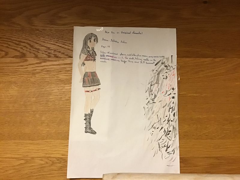 Hejla, tukaj je ena slika Melody iz moje zgodbe Skrivnosti mesta Ravenwood, ki sem jo narisala z vodenkami. Ne se preveč ozirat na desno stran, tam sem testirala čopič. Upam da vam bo všeč! Če hočte lahk objavim še sliko iz šolskega časopisa.