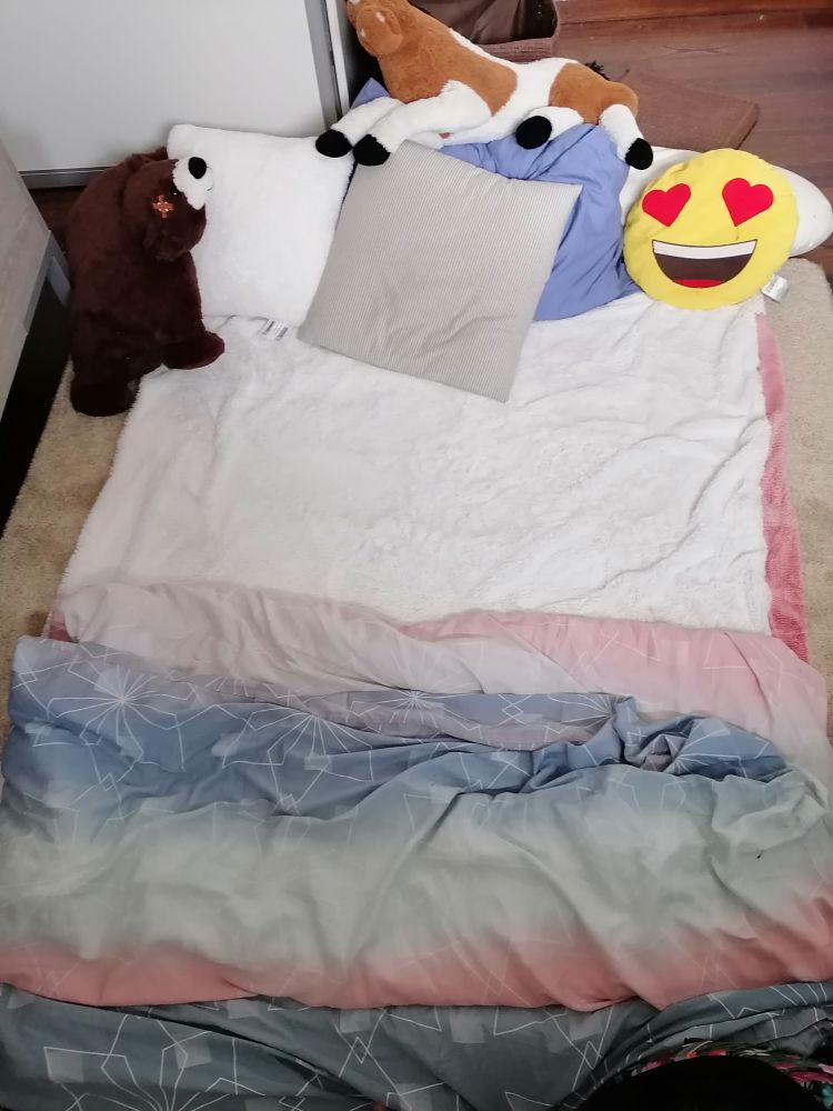 Jaz in moja bff sva si na tleh naredile tako Talno posteljo:joy: in sva gor spale. In je zlo udobno. Aja nekateri jo poznate kot Jennie:sweat_smile: