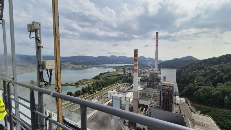 Danes smo šli z družino v Tremo elektrarno Šoštanj. Ogledali smo si celotno notranjost stolpa 6. Sepravi stroje in vso ostalo opremo, ki pripomore k delovanju elektrarne. Nakoncu smo šli še na streho, ki je na višini 130 m. In tu je nastale tale fotografija. Na njej se vidi celotna tovarna in še malo okolice.