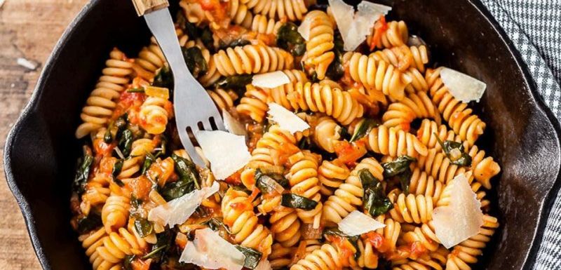 3.Ko so testenine narejene, dodamo še oprano mlado špinačo in jo vmešamo.