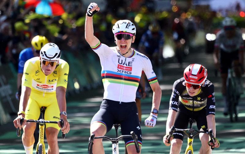 torej, zmagau ga je Remco evenopoel (soudal quick step), drugi pa je biu pogačar z 16 sekundami zaostanka.