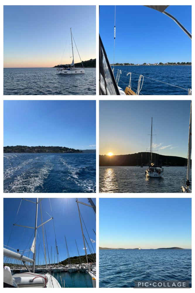 zbudil smo se in okol pol 6 iz kombijem odpravl na pot. do naše marine v primoštenu smo se peljali več ur(skori 6). ko smo prispel u marino smo nrdil check in vse stvari odnesl na jadrnico, parkiral kombi in okol treh odoplul. naša pot se je začela razburkano. prvi cilj je biu mali drvenik do katerega smo prišli v eni urci. pot smo nadaljevali do velikega drvenika. ko smo prišli smo poiskali zaliv, skuhali večerjo in za sladico spekl palačinke(mami mi jih je za rd spekla hihihi). ko smo povečerjal smo se pokopal in stuširal. noč smo zavlekl v pogovor(zunaj na jadrnici). okol 11smo se odpravl spat. morje je blo mirno ker je pa zelo pihalo in se je jadrnica stalno zibala sm se tisto noč zbudila okol 3zjutri in šla vn(na vrhu manj čutiš zibanje pa svež zrak je notr je mau kastrofobično k je ful mičkan use). kr neki časa še nisn mogla zaspat zato sm opazvala vetrnice na celini hhahha(tm nad splitom nek). hvala bogu sm pol enkrat hmau zaspala<3