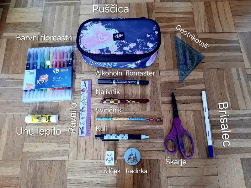 Tudi puščica je že precej stara, a je škoda kupovati novo, če je prva še uporabna. Barvic pa v puščici ne bom imela, ker jih že prejšnjo leto nismo potrebovali. To je vse za prvi del bloga, drugi pa najverjetneje pride še danes :)