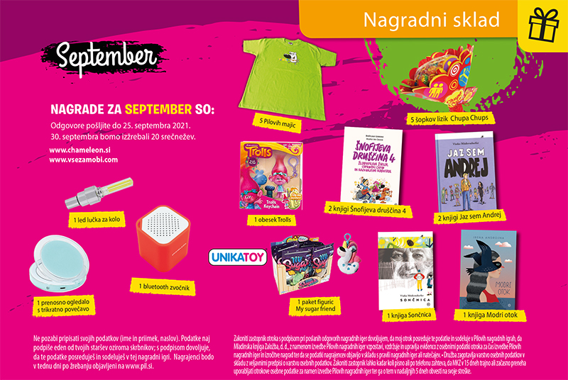 Nagrajenci bodo objavljeni v rubriki Nagrajenci na spletu.