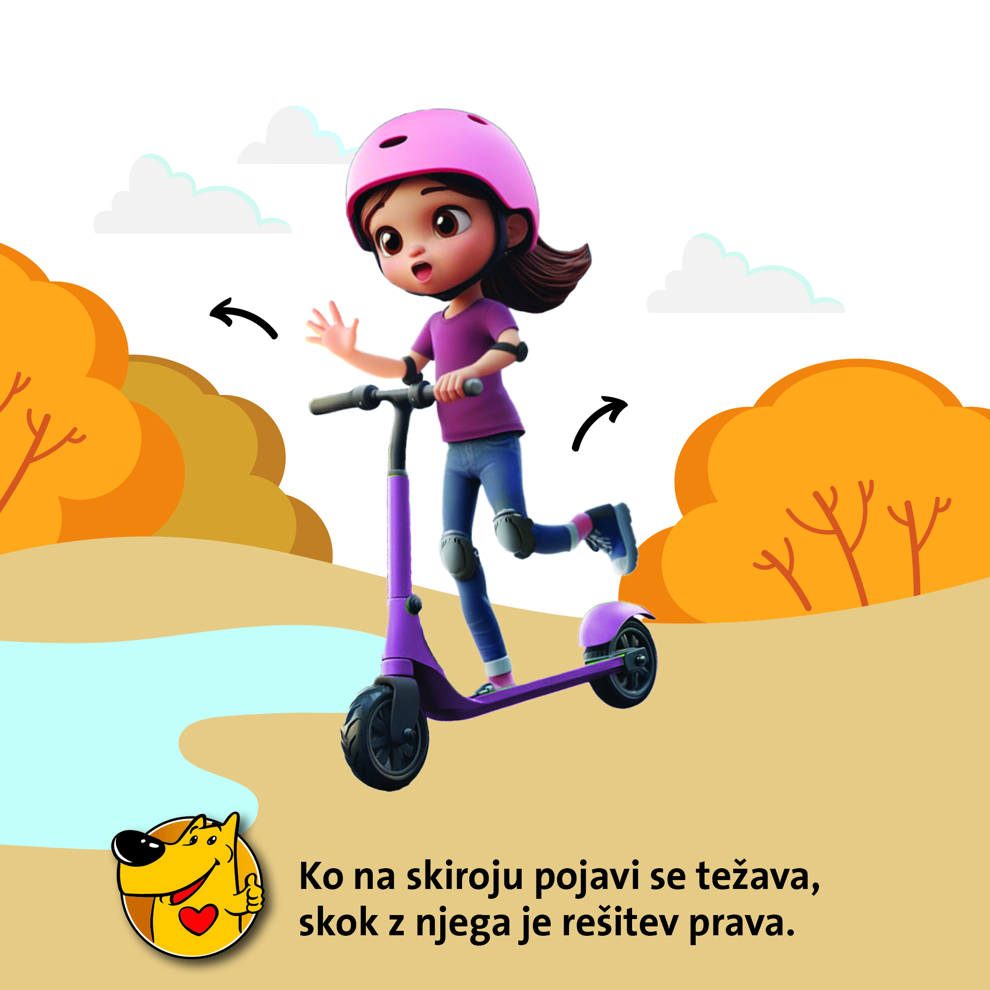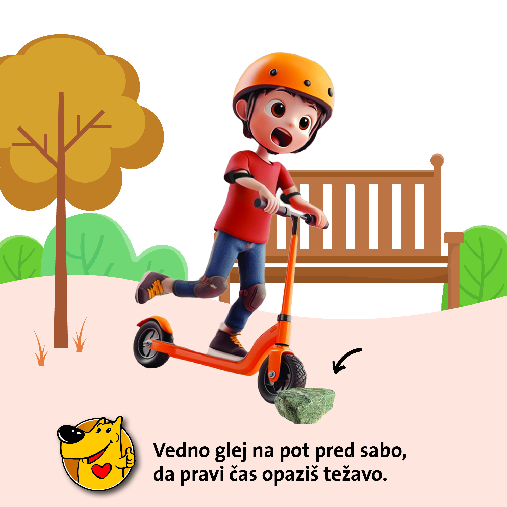 Kolesa skiroja, tudi električnega, so precej manjša od tistih, ki so jih vajeni kolesarji. Zato na skiroju prej izgubimo ravnotežje ali naletimo na oviro, ki lahko povzroči polet čez krmilo. Kaj lahko storiš za varno vožnjo in celo glavo?