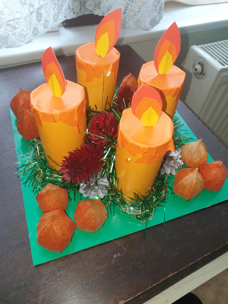 Včeraj jaz, mami in nona smo delale venček ampak tokrat z svečami.