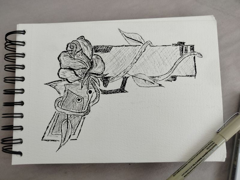 Narisala sm pač to. Idk a to predstavlja Guns N' roses ampak sam ta pistola ni nikomur namenjena da bi spodbujala streljanje al kej.