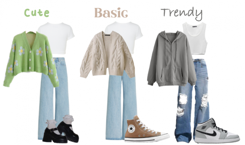 Kaj bi vi izbrali oz. nosili? Jaz bi definitivno basic, ker mi pri #1 ni všeč cardigan in čevlji, malo preveč barven je zame, pri #3 pa nisem glih za raztrgane kavbojke in tako kratek top.