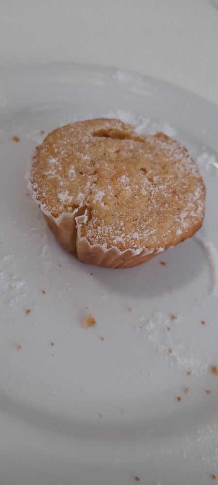 Pripravila sem bananine mafine, ki so zelo puhasti. Zadaj je malo popokal, ampak je odličen. Delala sem po okusu. Rabiš banane, mleko, jajce, moko, sladkor, maslo, pecilni prašek, vanilijev sladkor in še za posip sladkor v prahu.