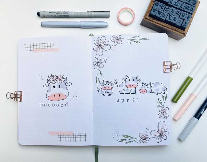 Omg! :grinning::yum::heart_eyes:Vedno boljša si v tem! :scream:Kravice so tako cute.:heart_eyes::cow: Rože so zelo elegante in celoten Bullet Journal me spominja na veliko noč (nimam pojma zakaj). :rose::hibiscus::sunflower::tulip::blossom::cherry_blossom::bouquet:Res se vidi koliko truda vlagaš v to in koliko ti to pomeni. Vedi, da ti bom vedno stala ob strani! Vedno znova nas presenetiš z vedno lepišimi bujoti. Toliko talenta imaš, da lahko jaz samo sanjam o tem...Lepe velikonočne praznike ti želim. :heart_eyes::rose: