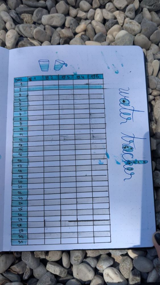 to je pa water tracker. nek mam še habit tracker sam se mi ga ne da slikat ker sm ga takrt pozabla, ga dobite če se mi bo dal.
