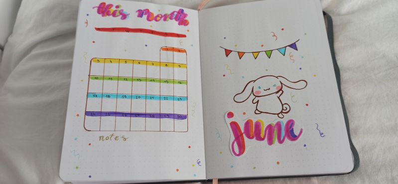 In nov bujoooo! Tema je ofc :sparkles::rainbow_flag::sparkles: hihi🤭. No za ta mesec sem si motiv zmislila sama  cinnamonroll 🥰.