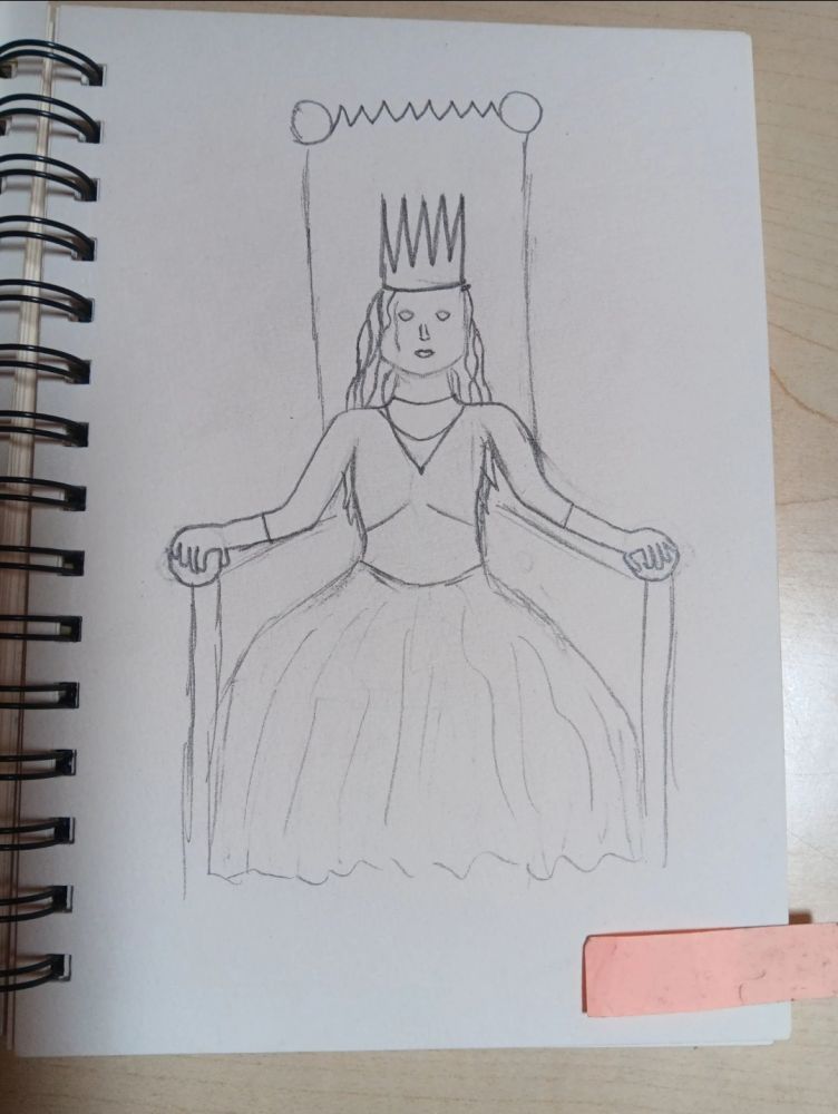 no ucer sm narisala tole dark queen in mi je uvistvu kr usec pac ponosna sm nase bahahha ceprau ofc je v moji glavi zgledla bujs in prou radiatala uno moc in magijo ane ampak je kr fajn ratala :) no zgornji del kikle nism vedla kasn nardit in zej zgleda ko nek bolero :') no pa naslonjalo je tk random