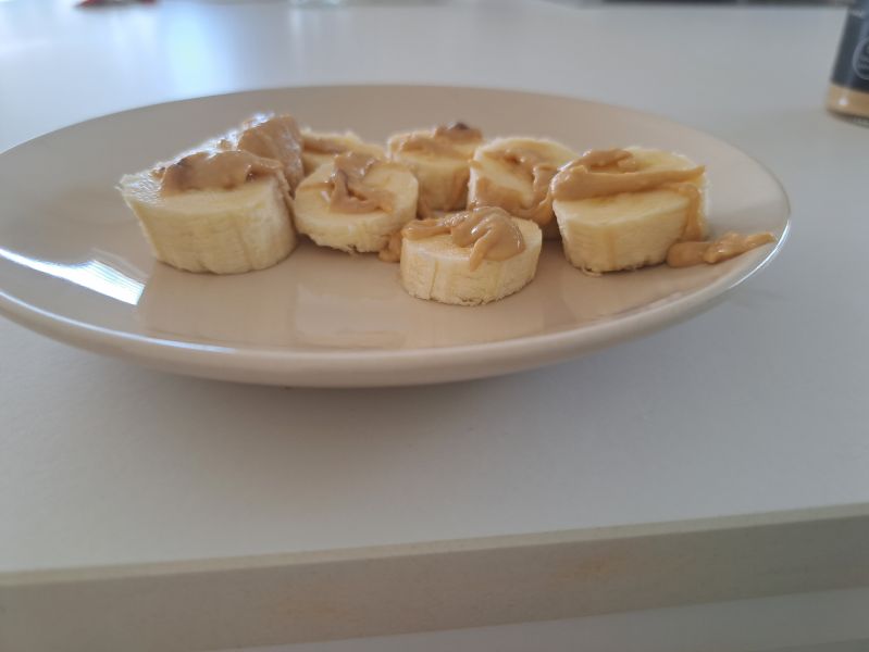 danes imam tekmo in ker seveda pred tekmo ni pametno veliko jest sem si pripravila banano in arašidovo maslo vesela bom vsakega :heart: ali:thumbsup:želim vam lepo nedeljo caaaav!!!