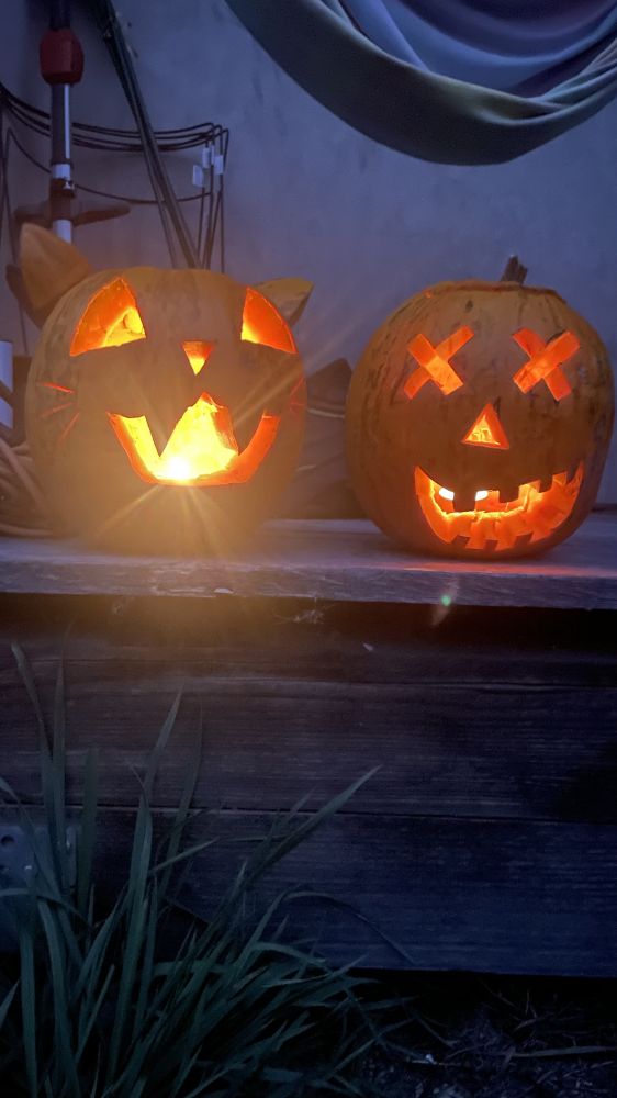To sta buči, ki sva jih včeraj izrezali s sestro. Moja je tista muca.