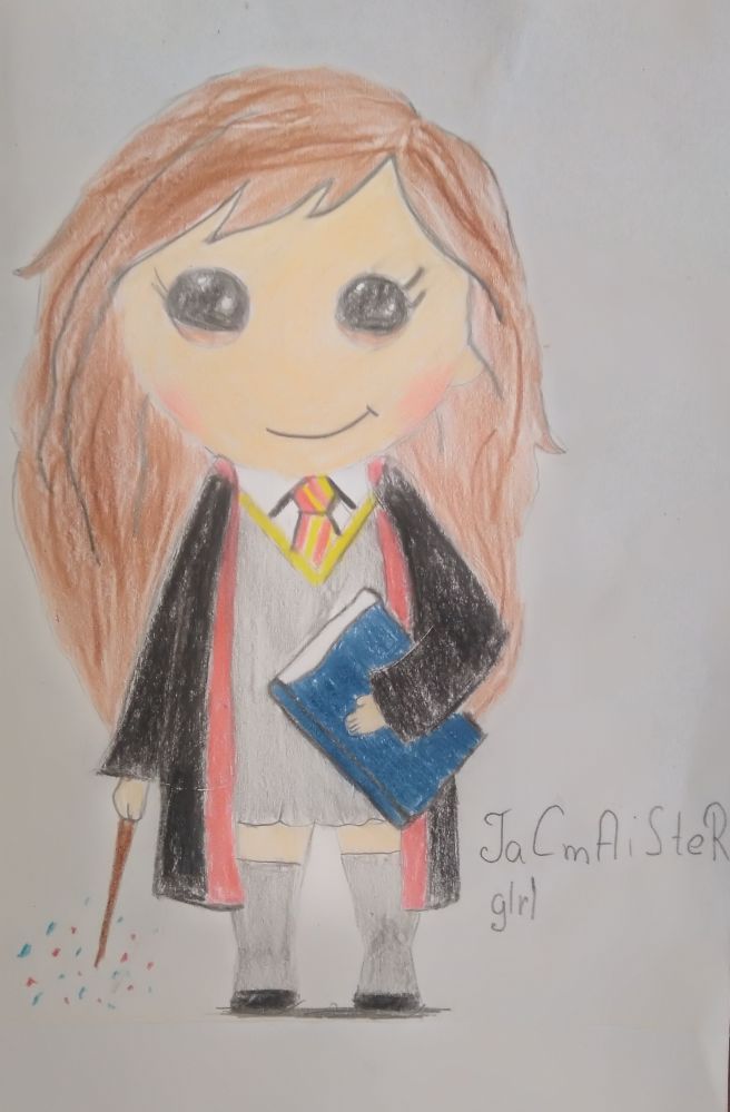 Heeelloo!! Danes sem narisala Hermiono! Še čakam na nove barvice, zato so barve malo čudne...:sweat_smile: