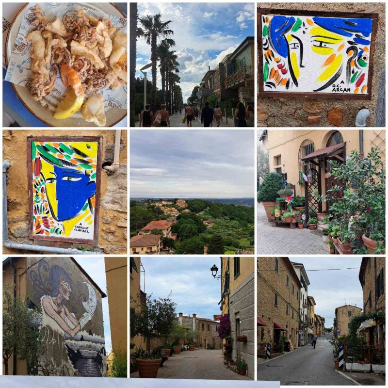 Ojlaaa! Tole je 4. del bloga, v tem blogu bom napisala kaj smo delali kaj včeraj. Uf.. moram se malo spomniti haha... Včeraj nam je žal nagajalo vreme in je bilo dopoldan spet oblačno/deževo in spet je bilo malo hladnje, zato smo se odpravili pogledati staro vasico Montescudaio. Od tam imam res veliko slik... a sem žal malo omejena s prostorom, ker lahko objavim eno sliko na enkrat in zato potem delam kolaže, ampak če dodaš preveč slik tja se jih veliko sploh nevidi dobro. Ta vasica je majhna, stara a vseno zanimiva in lepa. Vasica je znana po njenih tako rečenih poslikavah vidite lahko, da so prav vsaka vrata od plinske omarice poslikana in to z istim obrazom, ne zafrkavam se v celi vasici niso spustili niti enih vratc od plinske omarice vsa so poslikana in pobarvana. Podoben dizajn risanja lahko vidite na tisti sliki, ko je poslikana cela stena po domače rečeno fasada. Ko smo se malo sprehodili čez vasico smo se povzpeli še do njihove semizdi da je bila to cerkev, bila je na manjšem gričku in je bilo zaradi tega zeloo lep razgled, videl si celo pokrajno (od tam imam par lepih slik a v kolažu, ki sem ga naredila ne pride slika do izraza). Dopoldne se je vreme nasrečo izboljšalo zato smo se šli kopat. Zvečer smo se pa odpravila v mesto Cecina v tisti del mesta, ki je ob vodi, spet smo se malo tam sprehodili, čeprav smo tam že bila ampak tisti del mesteca ob vodi je resss lep. Tam smo se vsedli še na večerjo, jedla se prisežm da najboljše kalamare v mojem lajfuu resss so bli fulll dobri, zelo mi je bilo všeč, ker so bili zraven še škampi. Zvečer ko smo prišli nazaj v kemp sva šla jaz in oči gledat tekmo italij - hrvaška, predvajali so jo v kempu na ogromnem zasloni, najbolj je bilo zanimivo opazovati, ko so bili italjani že vsi prepričani, da bodo zgubila a potem je njihova reprezentanca dala gol v zadnji minuti, skakali so od veselja.
