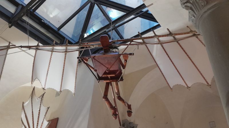 Bil sem v Da Vincijevem muzeju. Kar fajn res vse ti opiše on je zasnoval Helikopter in padala.Tufi s škripci se je ukvarjal. Zasnoval je tudi lesen tank hehe