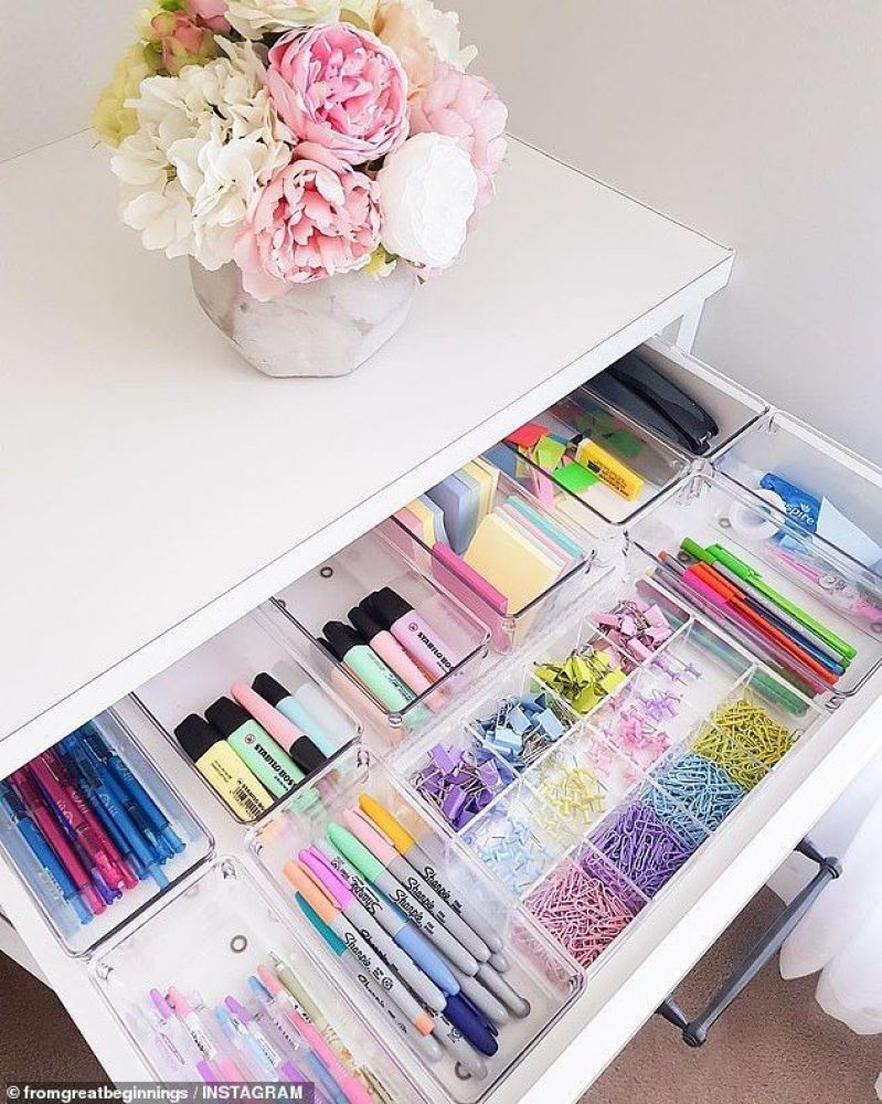 Kako smo? Za danes sem se odločila, da vam pokažem kako se bolje znajti v sobi. Vsi smo že doživeli (vsaj jaz), da se ti ob določenih trenutkih ne da stvari lepo zložiti v predal. Ampak sedaj vam predlagam, da si za v predale ali v omare naredite škatlice ali pa jih enostavno zbiraš od Ferrero roche. Škatlice si postaviš eno ob drugo in daš notri npr. Selotejpke, markerje, barvice, lepila, vrvice, tempere, lahko tudi razne kreme ...