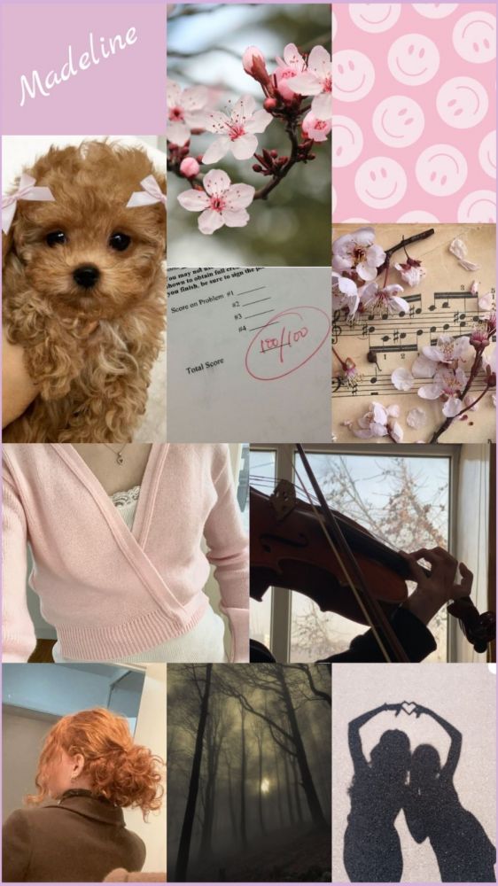 kle mate Madeline, kokr ste rekl, njen aesthetic je bl light pink (btw če se kdo ne spomne, ona igra violino). pa to je ni glih spojler, sam pač pr Madeline doma majo psa (un rjav pudl).