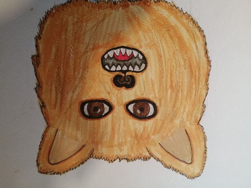 A je zanalašč na glavo obrnjena slika? Ker ravno to poudari njegovo/njeno radovednost <3