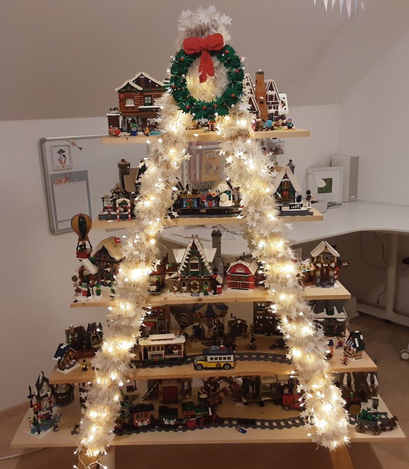 hej, nova objava po dolgoo časa. mi z družino zbiramo zimske lego kocke (ja mal smo nori) in sm se odlocla, da jih objavim. So na leseni lestvi s policami. Mamo mesto, Božičkovo domovanje in hiše za živet in zimsko kočo.