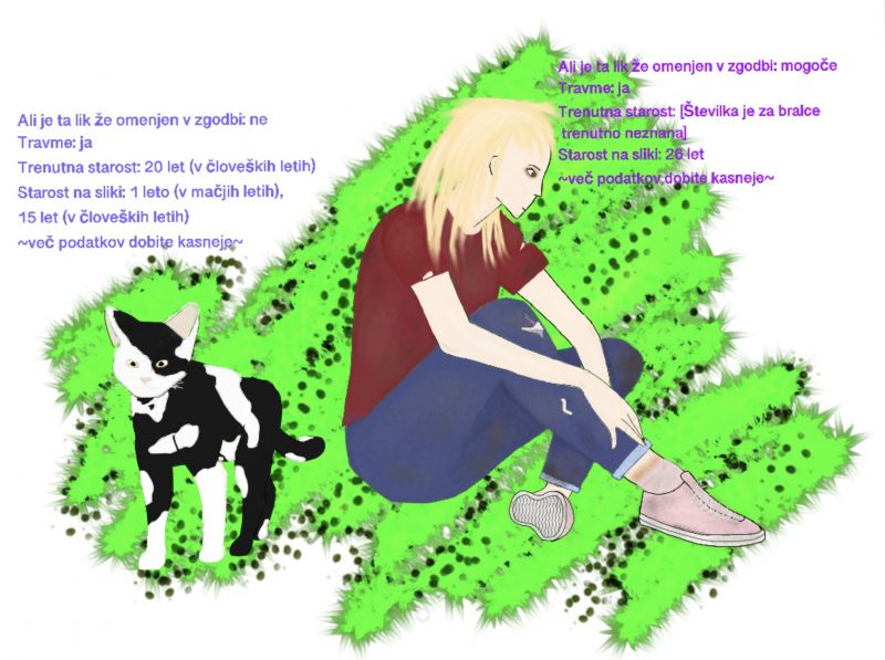 Živjoo! :D Tukaj je (končno) risba dveh likov iz moje zgodbe. Bralci/-ke ste vabljeni, da delite kakršnekoli teorije ali misli, ki jih imate o teh dveh likih.