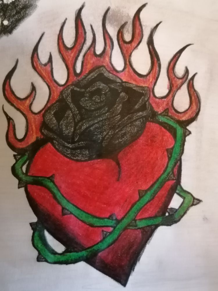 tukaj sem narisala srce v trnjih črne vrtnice... to je tudi nek znak Emo girl/boy...