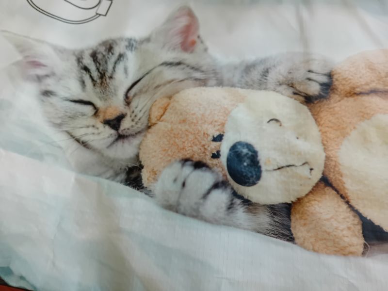 Hey poglejte tole prikupno malo mucko ki stiska medvetka