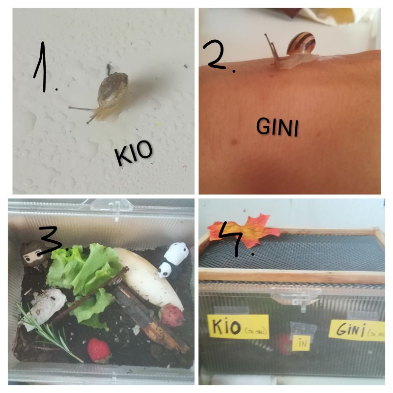 4.- (od vzuni) njuno stanovanje- ja je pač neka škatla ka jo je moj ata naredu prov za polže (pač loly je v enmu razredu mogla met domačo žival pa je izbrala polža in pol je ata to naredu (v tej škatli so bli že 4 polži:sweat_smile:)) in notr živita, gor sm dala liste imena in; *i*in*i*, na vrh sm pa dala list :maple_leaf: kot jesen:slight_smile: