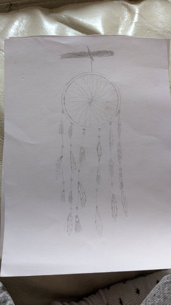 tale je pa ubistvu lovilec sanj. enkrat sm prespala pr svoji prjatlci in sva neki risale in sm pač narisala lovilec sanj v njeni sobi.