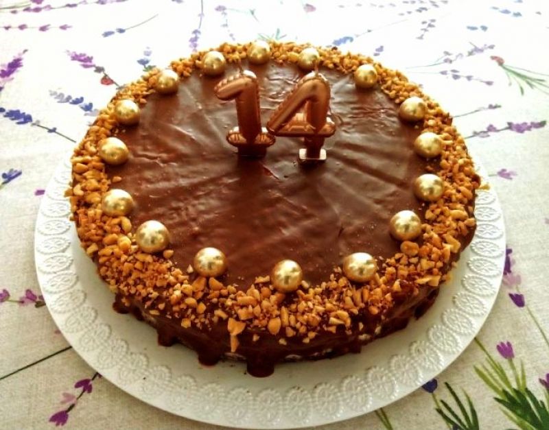 Naredila mi jo je moja teta, k ji gre pečenje najrazličnejših sladic fuul dobr od rok in iskreno ne vem, če sem sploh kdaj praznovala svoj rd brez torte, ki mi jo je spekla ona.
