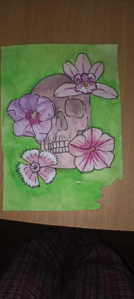 Občudujem!! Rože so popolnih oblik in okostnjaška glava prav tako. <3 objavi še kaj risb